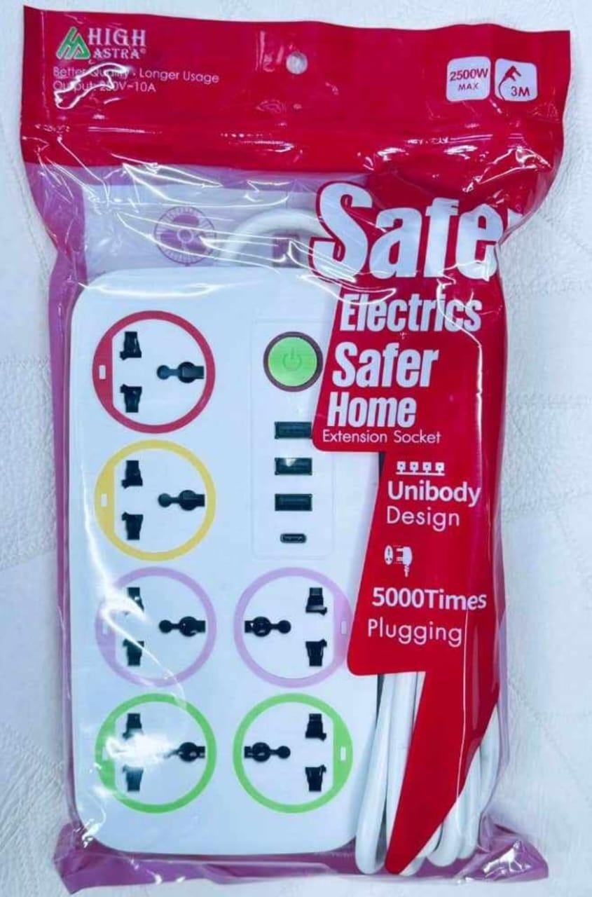 6 way astra extension is very powerful and suitable for house appliances.it also has 3 USB ports and c to c port .